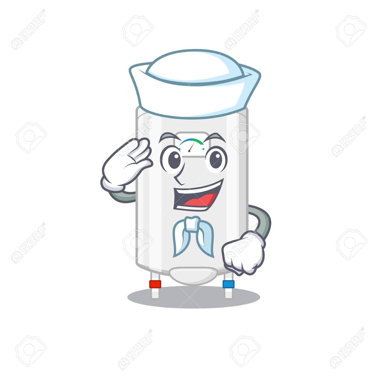 Sailor Cartoon Character Of Gas Water Heater With White Hat